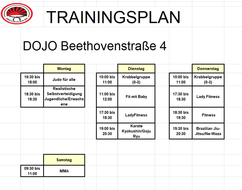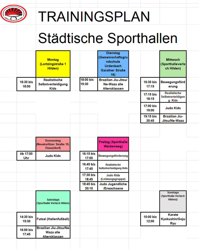 Trainingszeiten und Orte